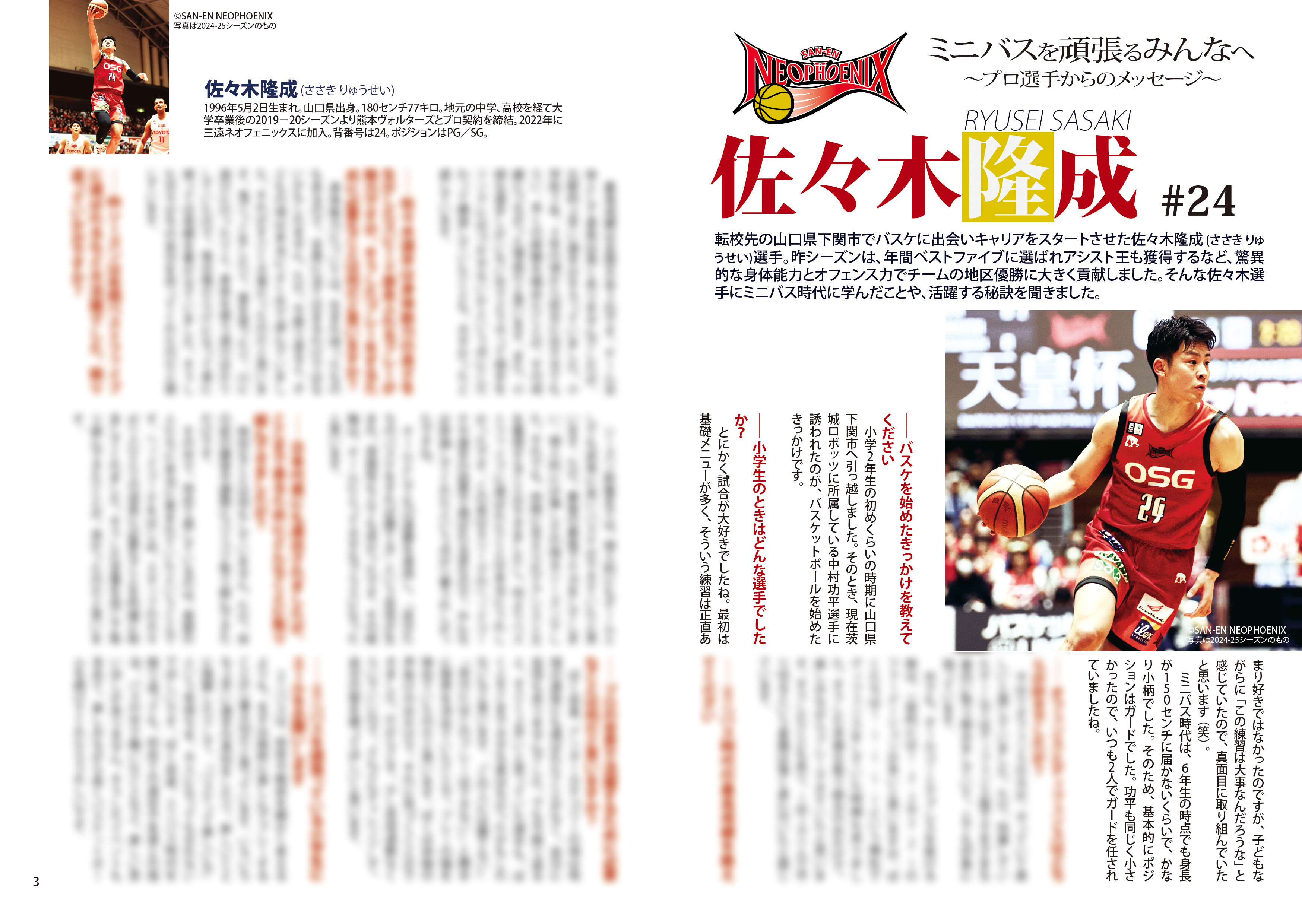 プロバスケット選手からのメッセージや大会レポートなど、充実のラインナップです。