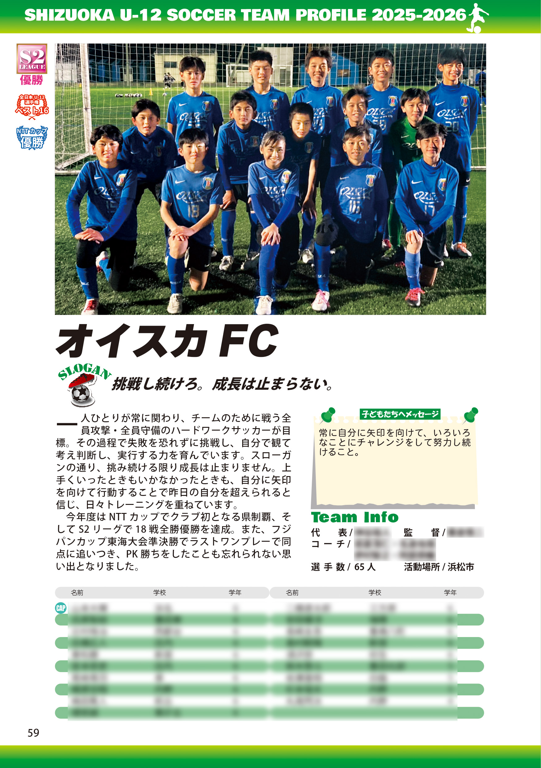県内のU-12サッカーチームを紹介する選手名鑑を2023年度に初めて発行しました。